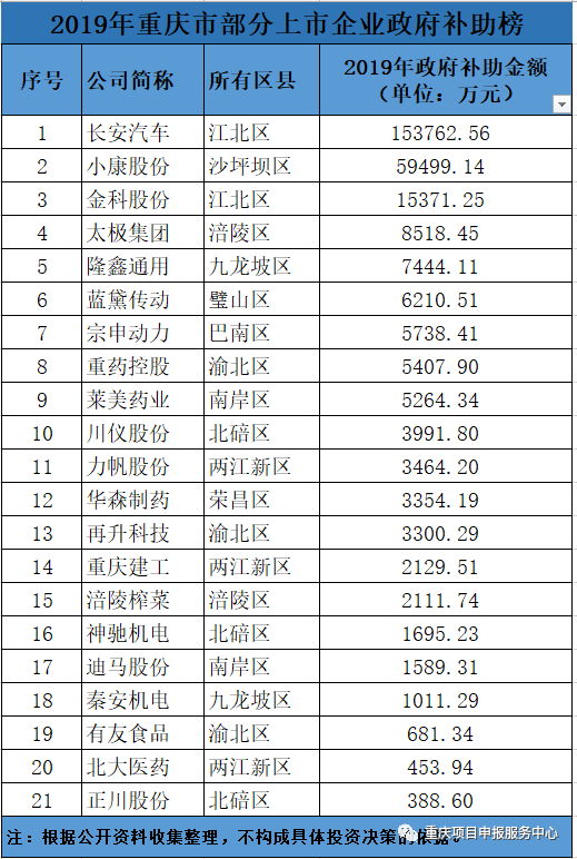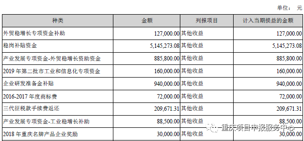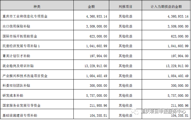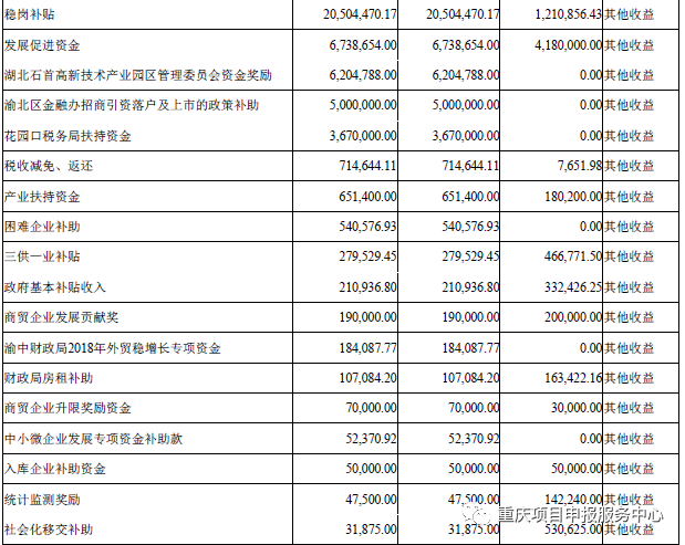 重庆上市企业获得补助从产业发展、稳岗返还、研发补助、专利商标补助应有尽有,根据公开数据,小编独家整理重庆市部分上市企业获得补助资金情况: