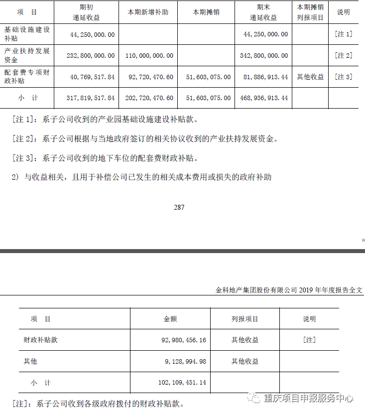 2.政府补助资金与公司规模和所处行业有重大关系,公司规模越大,获得的政府补助资金越高,行业处于国家和市级战略新兴行业领域获得政府补助资金起越广;比如长安汽车和金科股份营业收入相当,但是获得的政府补助资金天壤之别。